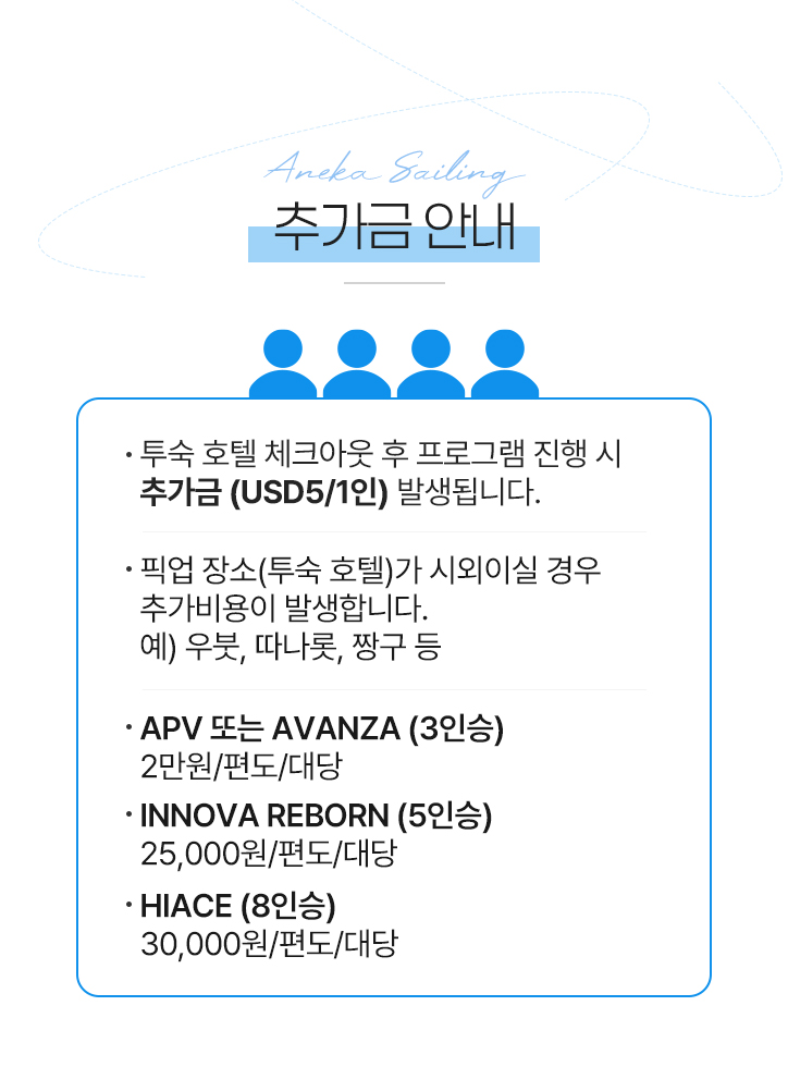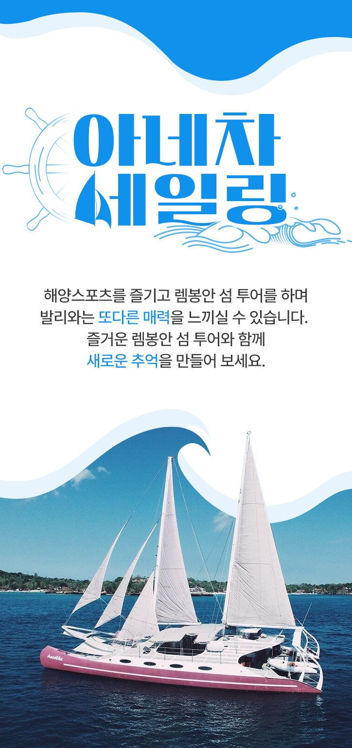 *본 상품은 아네차 세일링 기준으로 운영되며, 해당 업체의 사정으로 인해 운항이 불가하거나 만석(Full-booked)일 경우, 동일 등급의 타 업체 세일링 상품으로 대체되어 진행됩니다.