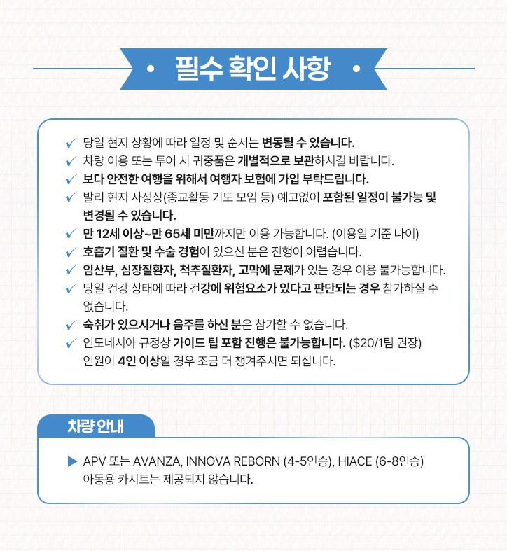 - 투어 시간 : 10시간 30분 (이동 시간 포함)