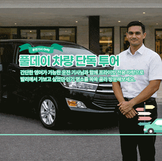 - 간단한 영어 단어 구사 가능한 운전 기사 + 왕복 전용 차량 풀데이 12시간 투어