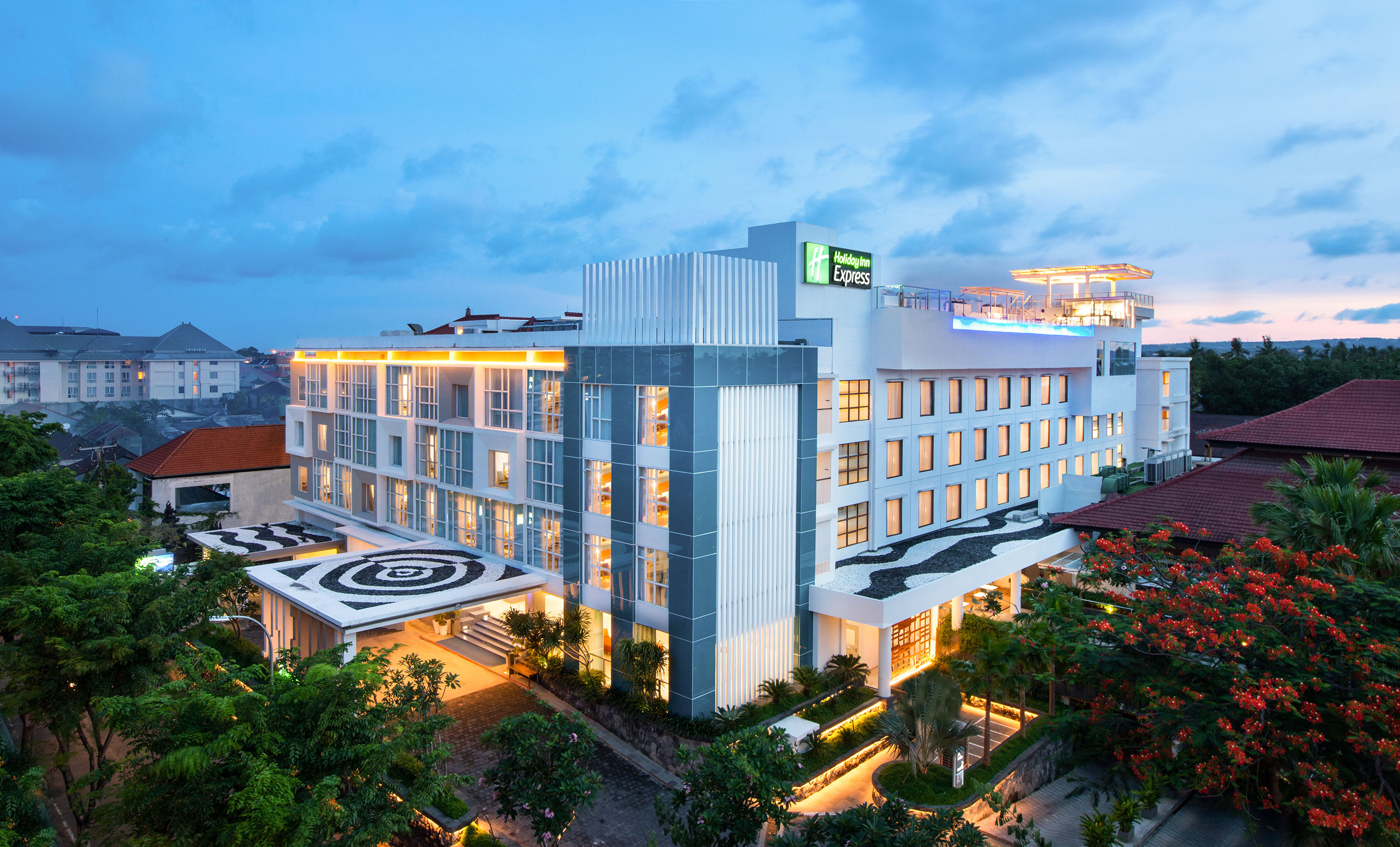 **홀리데이 인 익스프레스 바루나 Holiday Inn Express Baruna Bali는 꾸따 세가라 비치 인근에 자리한 모던하고 가성비 4성급 호텔로 덴파사르 발리 국제 공항까지 10분 거리로 공항과도 가까운 호텔입니다.