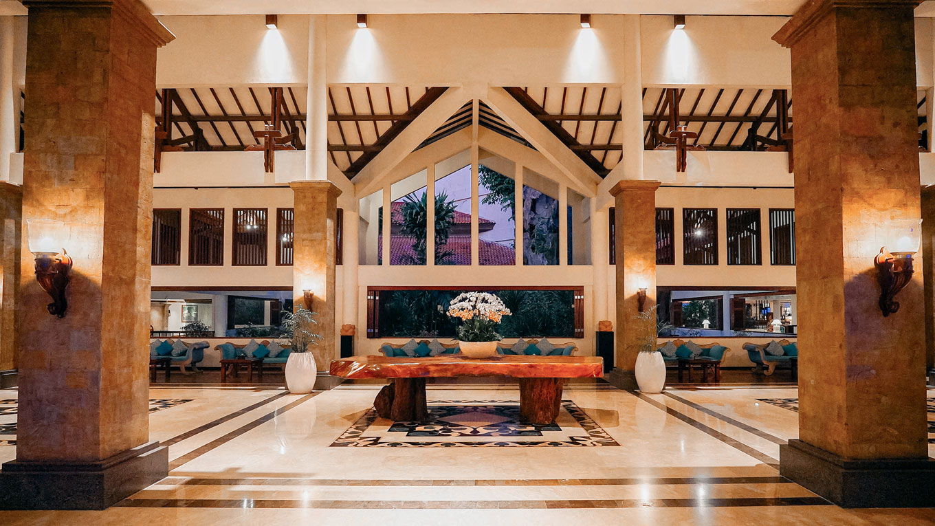 **그랜드 미라지 리조트 & 탈라쏘 발리 (Grand Mirage Resort & Thalasso Bali)**는 누사두아 탄중 베노아 해변에 위치한 5성급 올인클루시브 리조트로, 특히 가족 여행객들에게 인기가 높은 리조트입니다.