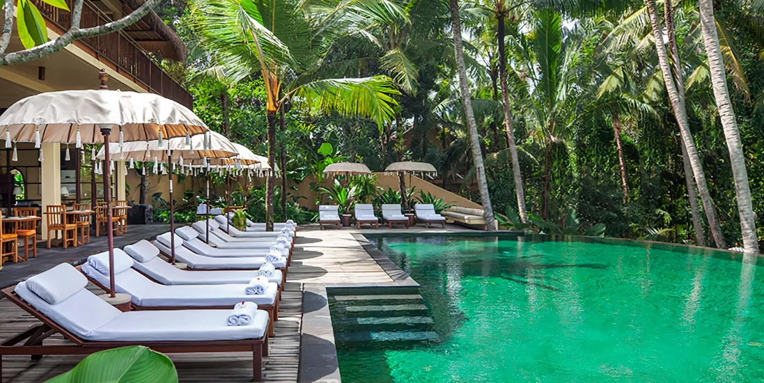 **코마네카 라사 사양 (Komaneka Rasa Sayang)**은 발리 우붓 몽키 포레스트 로드 중심부에 있어 쇼핑과 식사에 최적화된 위치이며, 전통 발리 건축 양식을 현대적으로 재해석한 세련된 디자인의 부티크 호텔입니다.