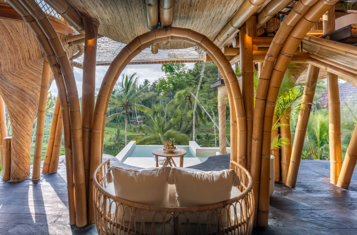 **밤부텔 사와 뷰 (Bambootel Sawah View)**는 우붓 탐파시링 인근 언덕에 위치하며, 친환경적인 대나무를 이용해 지어진 성인 전용 프라이빗 부티크 리조트입니다.