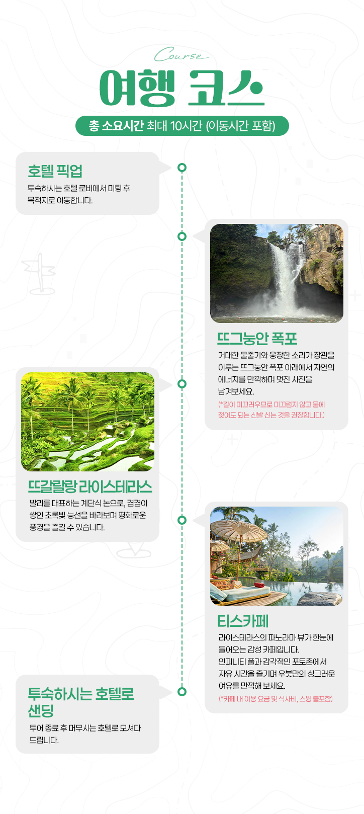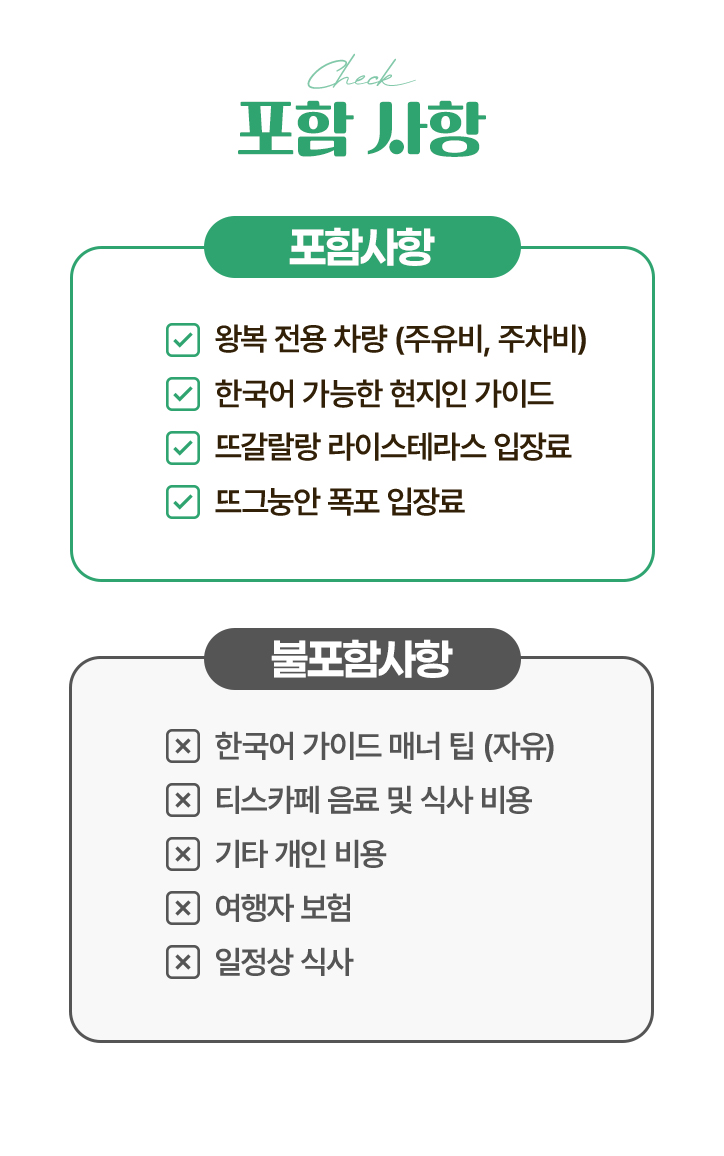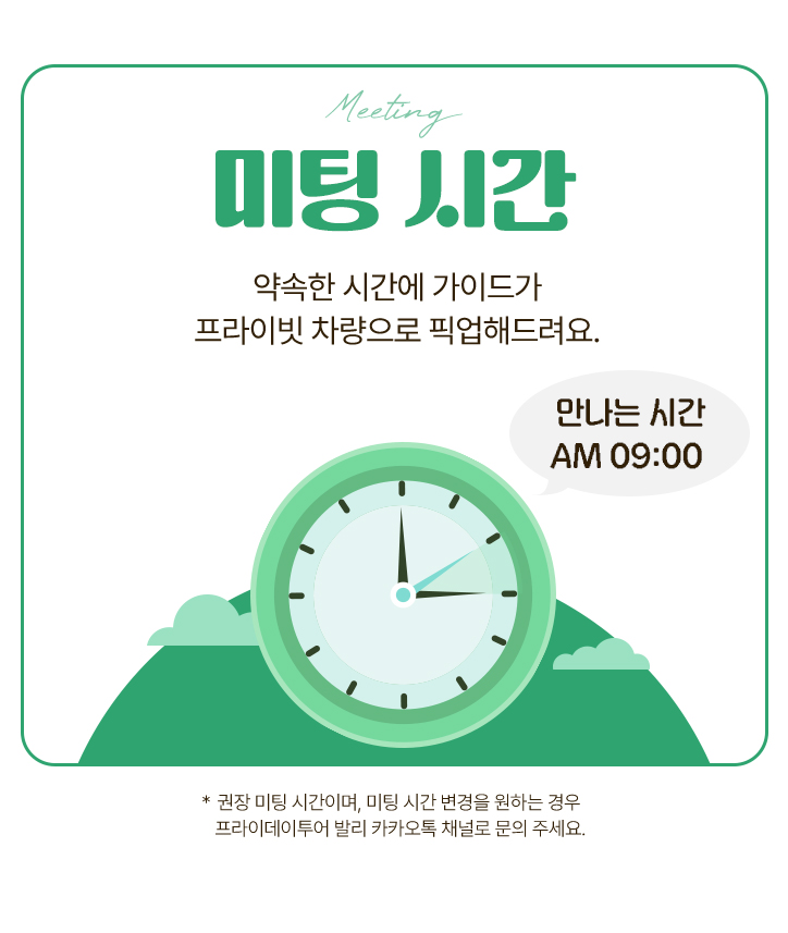 - 투어 시간 : 최대 10시간 (이동 시간 포함)
