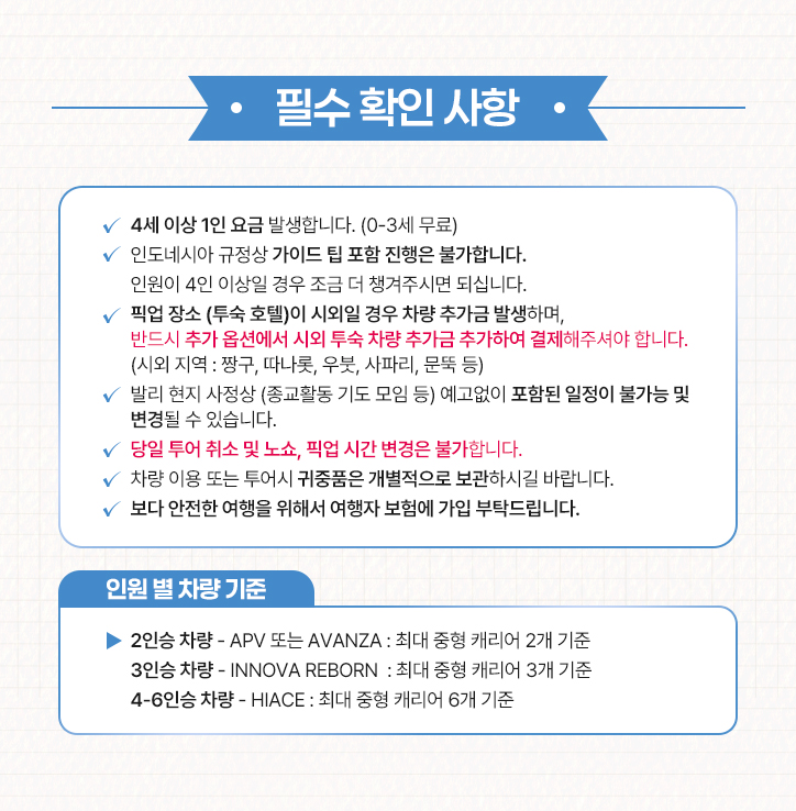 🚗 2인승 차량│APV 또는 AVANZA 🧳최대 중형 캐리어 2개 기준