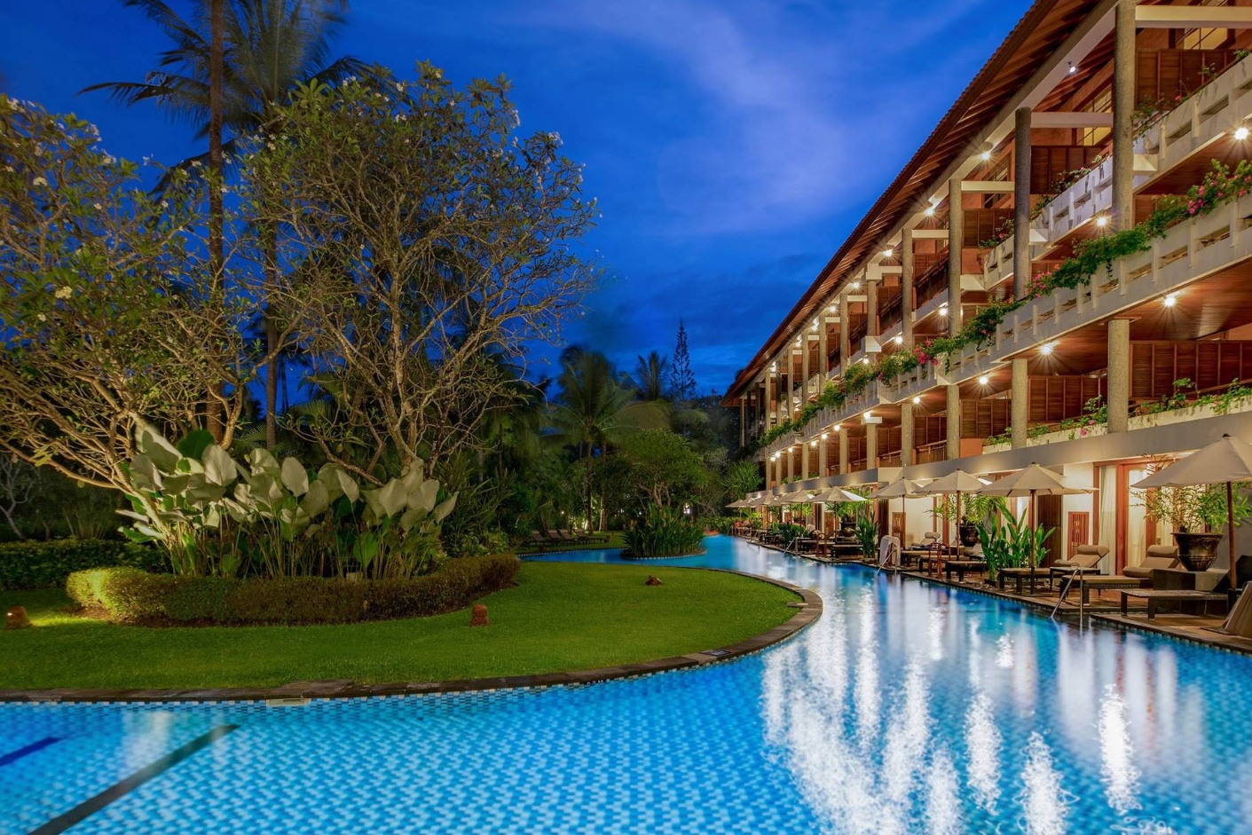 누사두아 ITDC 단지 내 비치 프론트에 자리한 5성 리조트로 8개의 레스토랑과 4개의 수영장, 워터파크 등 대규모 시설을 제공하며, Bali Collection 쇼핑몰까지도 도보 이동이 가능합니다.