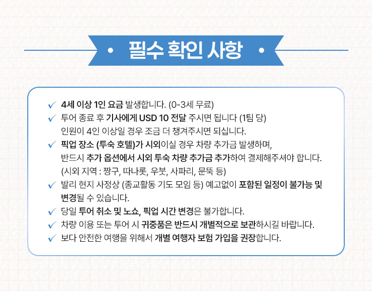 - 투어 시간 : 7시간 (이동 시간 포함)